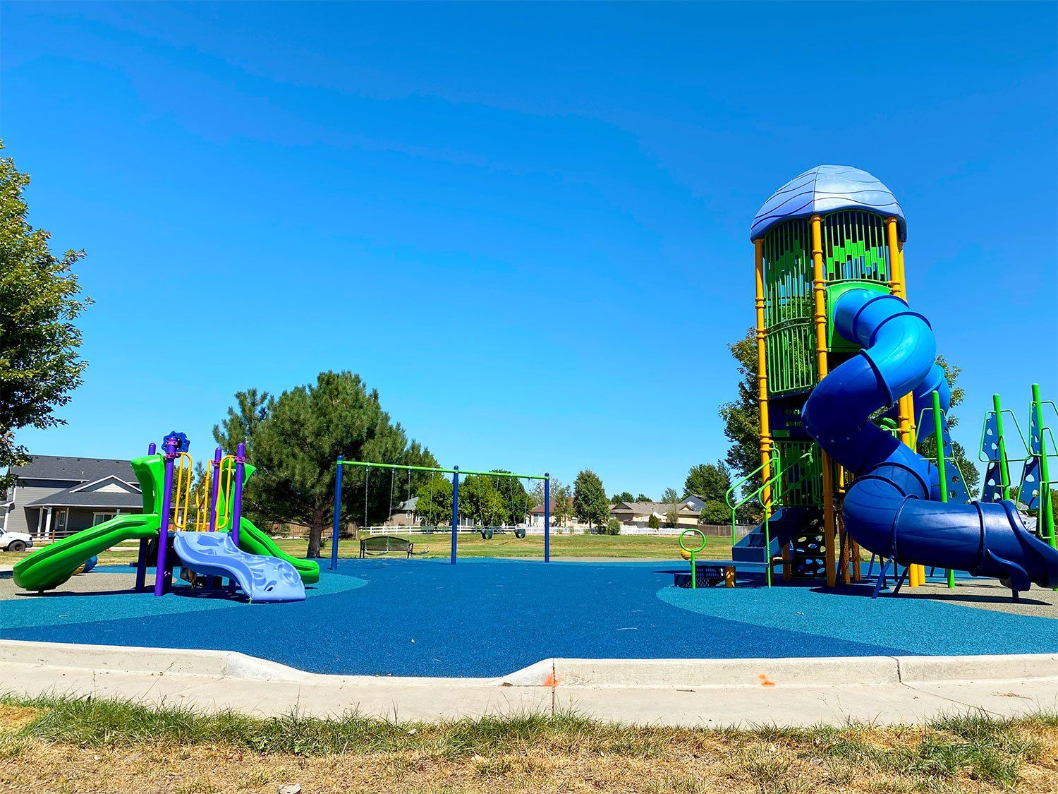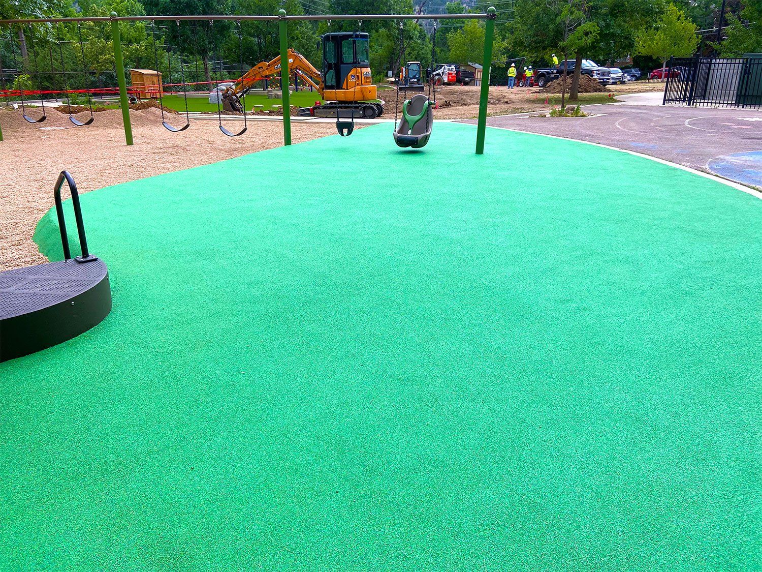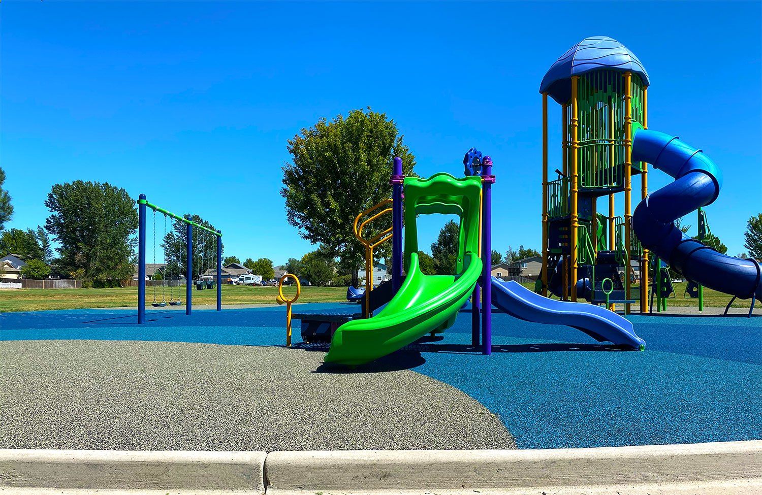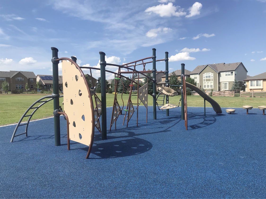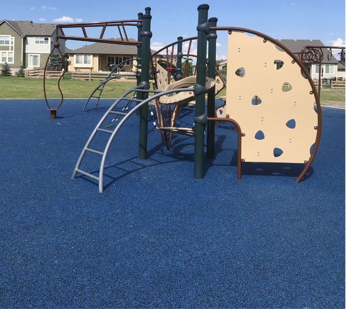 Proper safety surfacing is a critical part of any well-rounded playground or outdoor recreational space. Our proprietary brand of poured in place surfacing meets all ASTM Fall Height and Impact Attenuation safety standards while offering the benefit of complete customization to our clients and the end user. Contact us to learn more about all of our rubber playground surfacing options!