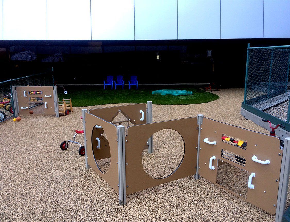 Utilizing recycled products, Performance Poured in Place offers a range of superior surfaces. These two-layered unitary products are impact absorbing, providing resilient non-skid surfaces that are an excellent choice for accessibility. The surface layer may be specified as one or a combination of colors, encouraging graphic designs that can range from custom logos to simple games like tic-tac-toe and hopscotch These graphics can be utilized to enhance ground level play on every playground, thus increasing play value!